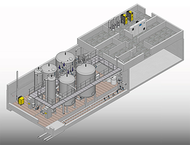 A waterworks facility is used to extract, treat, and supply drinking or process water. It typically comprises pumps, pipes, filters, tanks, fittings, and automation technology.